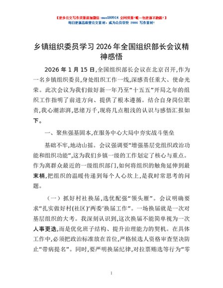 / 乡镇组织委员学习2026年全国组织部长会议精神感悟