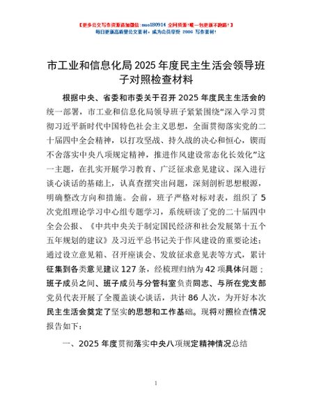 / 市工业和信息化局2025年度民主生活会领导班子对照检查材料