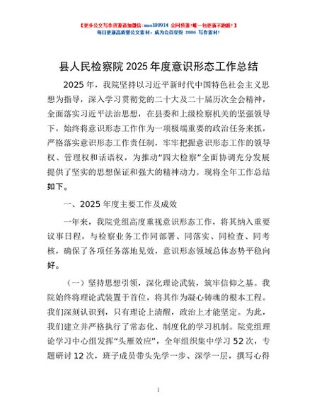 / 县人民检察院2025年度意识形态工作总结