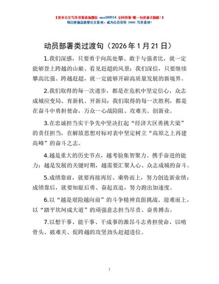 / 动员部署类过渡句(2026年1月21日)