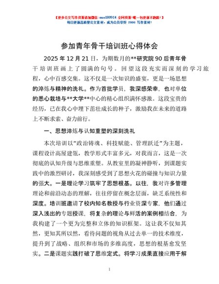 / 参加青年骨干培训班心得体会