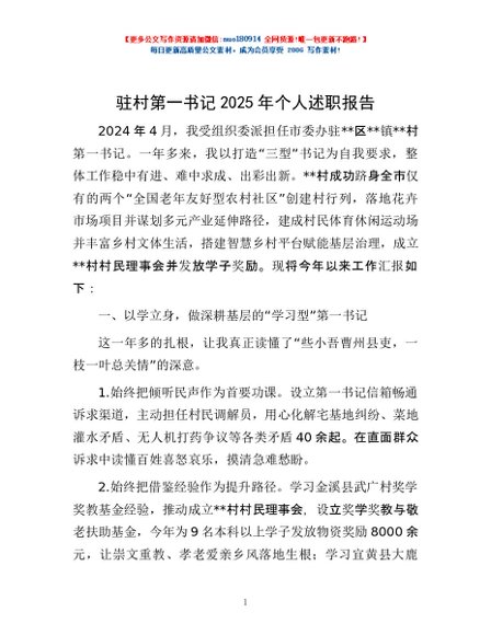 / 驻村第一书记2025年个人述职报告