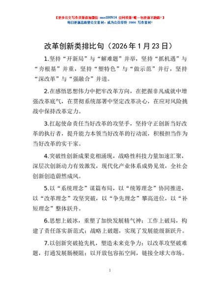 / 改革创新类排比句(2026年1月23日)