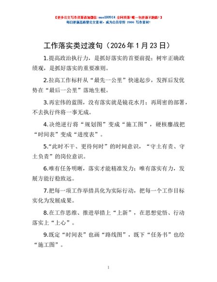 / 工作落实类过渡句(2026年1月23日)