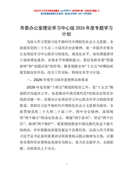 / 市委办公室理论学习中心组2026年度专题学习计划