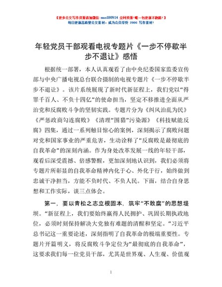 年轻党员干部观看电视专题片《一步不停歇半步不退让》感悟