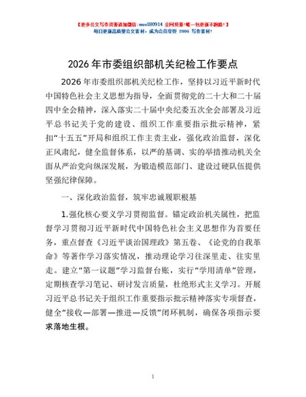 / 2026年市委组织部机关纪检工作要点