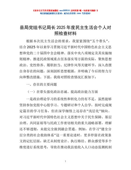 / 县局党组书记局长2025年度民主生活会个人对照检查材料