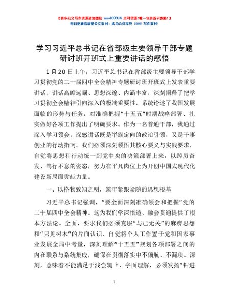 / 学习习近平总书记在省部级主要领导干部专题研讨班开班式上重要讲话的感悟