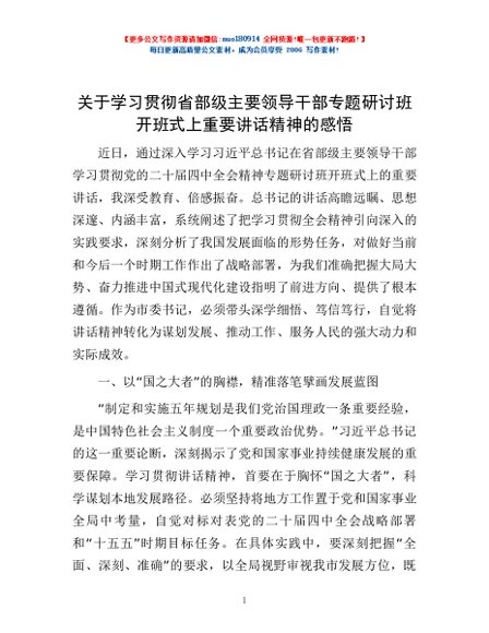 / 关于学习贯彻省部级主要领导干部专题研讨班开班式上重要讲话精神的感悟