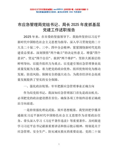 / 市应急管理局党组书记、局长2025年度抓基层党建工作述职报告