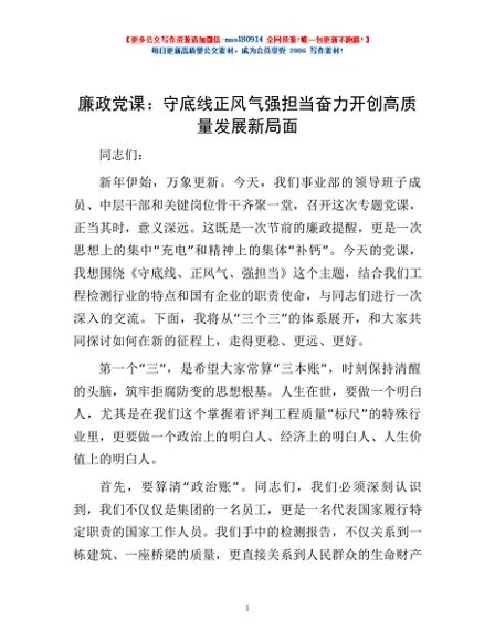/ 廉政党课:守底线正风气强担当 奋力开创高质量发展新局面