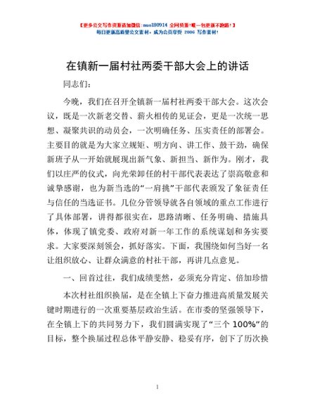 / 在镇新一届村社两委干部大会上的讲话