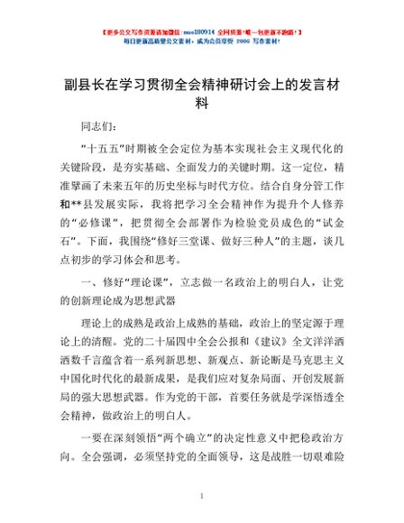 副县长在学习贯彻全会精神研讨会上的发言材料