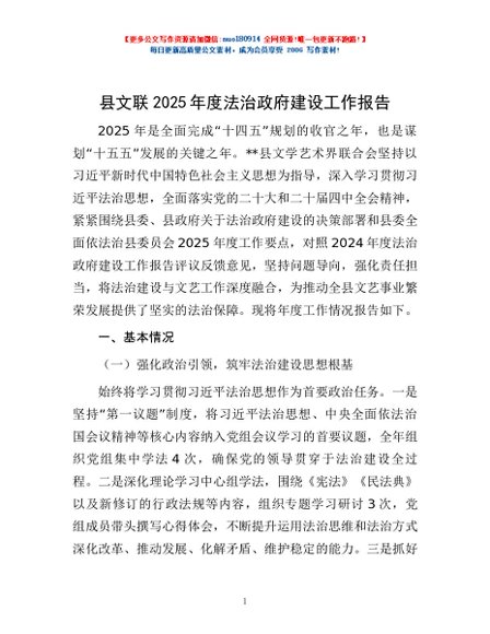 / 县文联2025年度法治政府建设工作报告