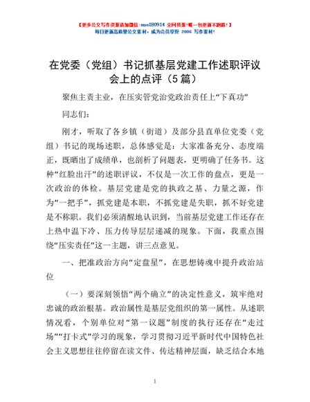 / 在党委(党组)书记抓基层党建工作述职评议会上的点评(5篇)