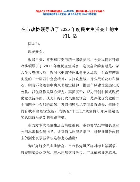 / 在市政协领导班子2025年度民主生活会上的主持讲话
