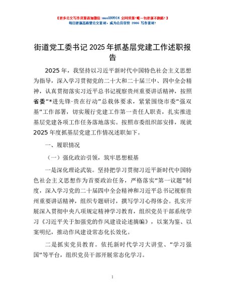 / 街道党工委书记2025年抓基层党建工作述职报告