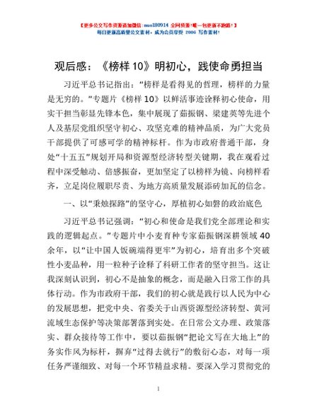 / 观后感:《榜样10》明初心,践使命勇担当