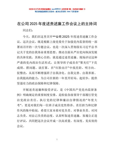 / 在公司2025年度述责述廉工作会议上的主持词