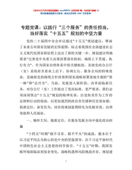 / 专题党课:以践行“三个服务”的责任担当,当好落实“十五五”规划的中坚力量