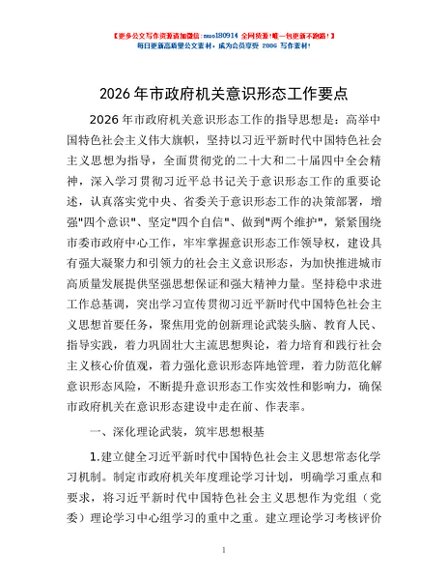 / 2026年市政府机关意识形态工作要点