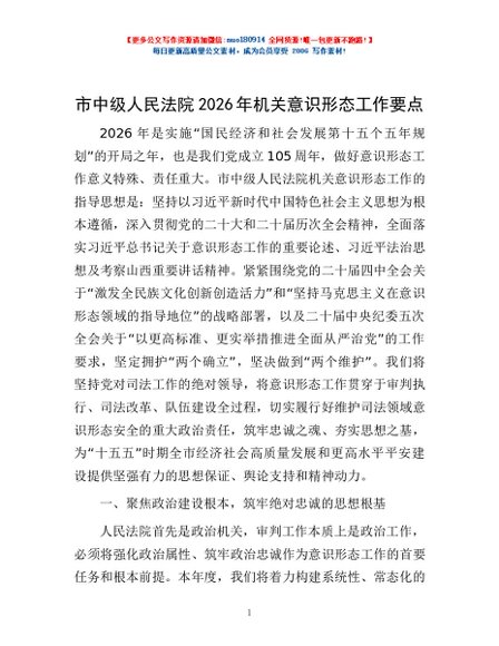 / 市中级人民法院2026年机关意识形态工作要点