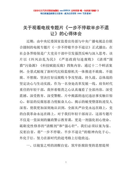 / 关于观看电视专题片《一步不停歇半步不退让》的心得体会