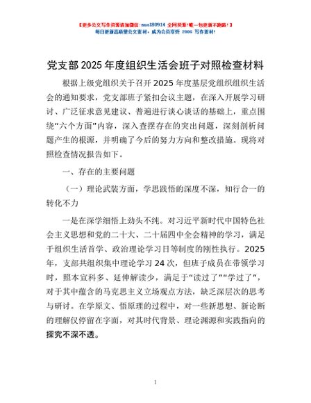 / 党支部2025年度组织生活会班子对照检查材料