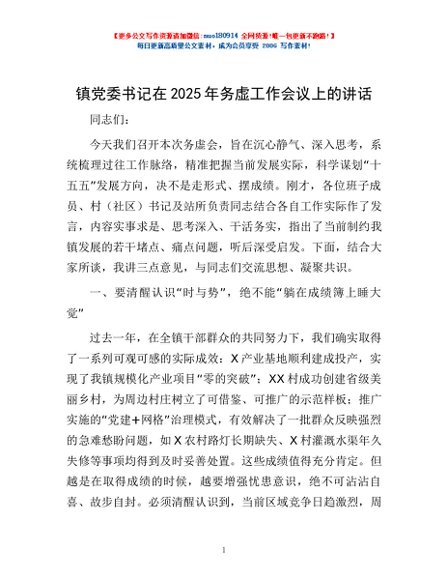 / 镇党委书记在2025年务虚工作会议上的讲话