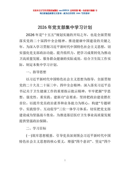 / 2026年党支部集中学习计划