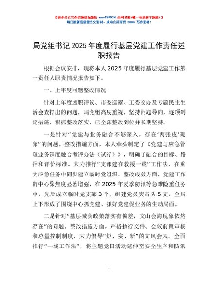 / 局党组书记2025年度履行基层党建工作责任述职报告
