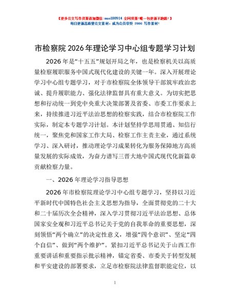 / 市检察院2026年理论学习中心组专题学习计划