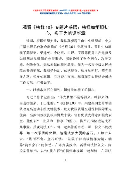 / 观看《榜样10》专题片感悟:榜样如炬照初心,实干为帆谱华章