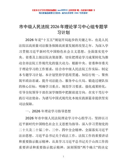 / 市中级人民法院2026年理论学习中心组专题学习计划