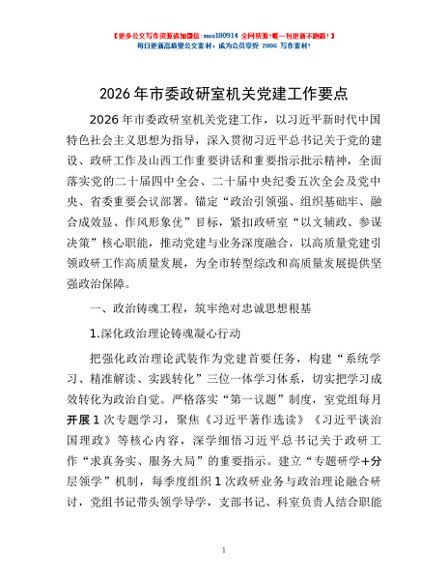 / 2026年市委政研室机关党建工作要点