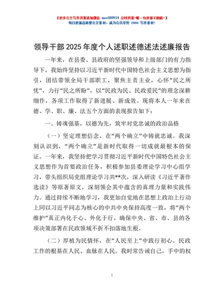 / 领导干部2025年度个人述职述德述法述廉报告