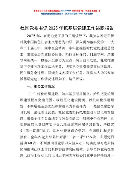 / 社区党委书记2025年抓基层党建工作述职报告