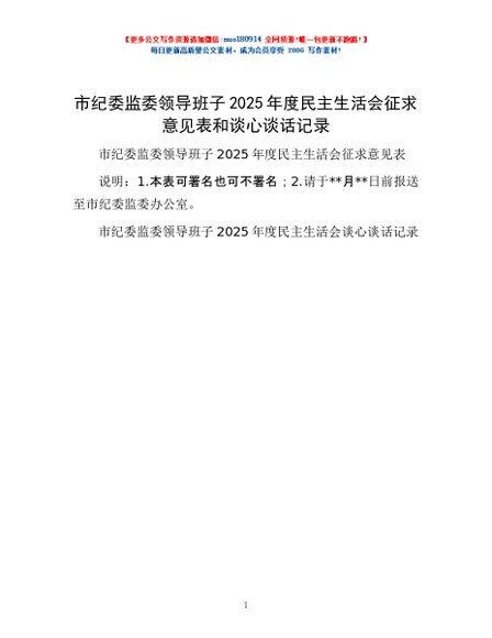 / 市纪委监委领导班子2025年度民主生活会征求意见表和谈心谈话记录