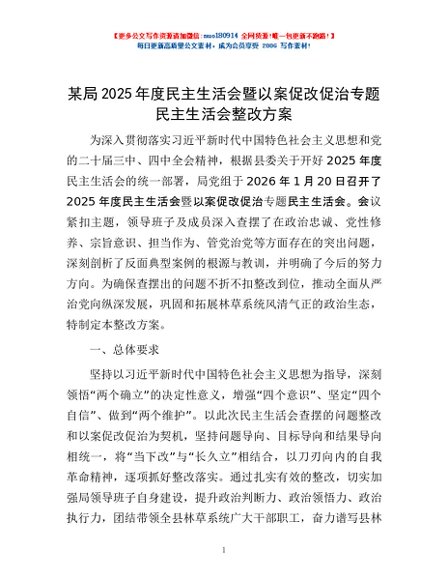 / 某局2025年度民主生活会暨以案促改促治专题民主生活会整改方案