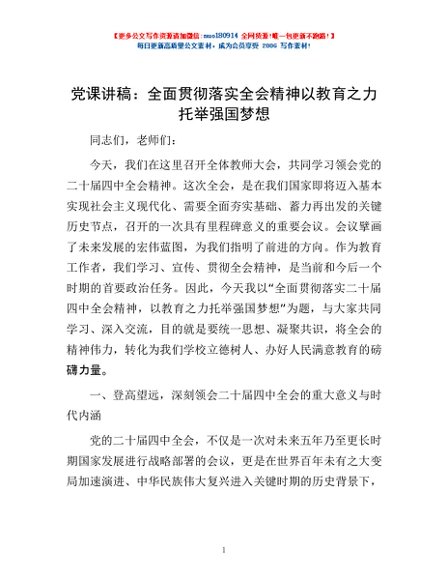 / 党课讲稿:全面贯彻落实全会精神 以教育之力托举强国梦想