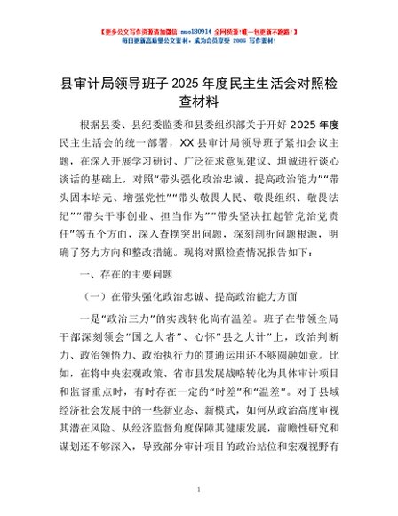 / 县审计局领导班子2025年度民主生活会对照检查材料