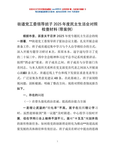 / 街道党工委领导班子2025年度民主生活会对照检查材料(带案例)