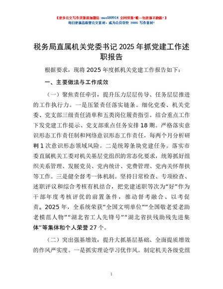 / 税务局直属机关党委书记2025年抓党建工作述职报告