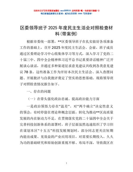 / 区委领导班子2025年度民主生活会对照检查材料(带案例)