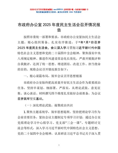 / 市政府办公室2025年度民主生活会召开情况报告