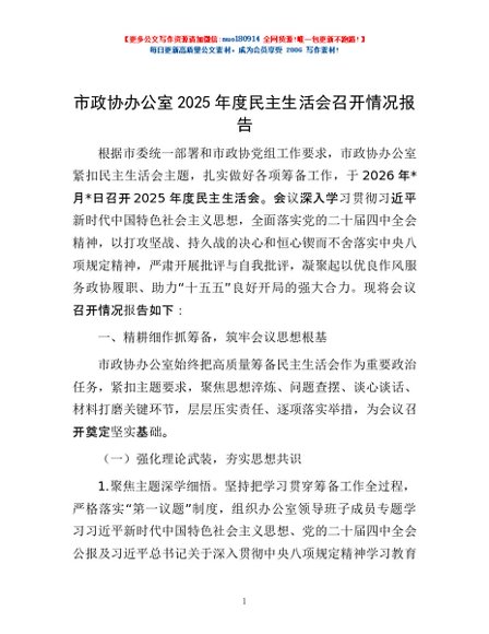 / 市政协办公室2025年度民主生活会召开情况报告