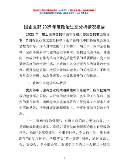 / 国企支部2025年度政治生态分析情况报告