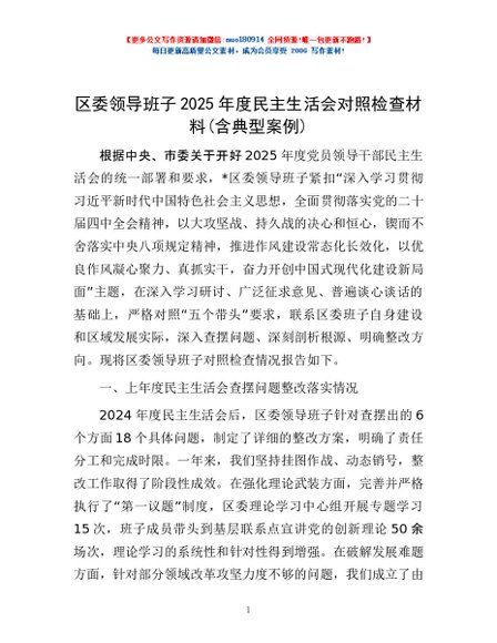 / 区委领导班子2025年度民主生活会对照检查材料 (含典型案例)