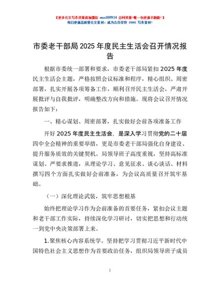 / 市委老干部局2025年度民主生活会召开情况报告
